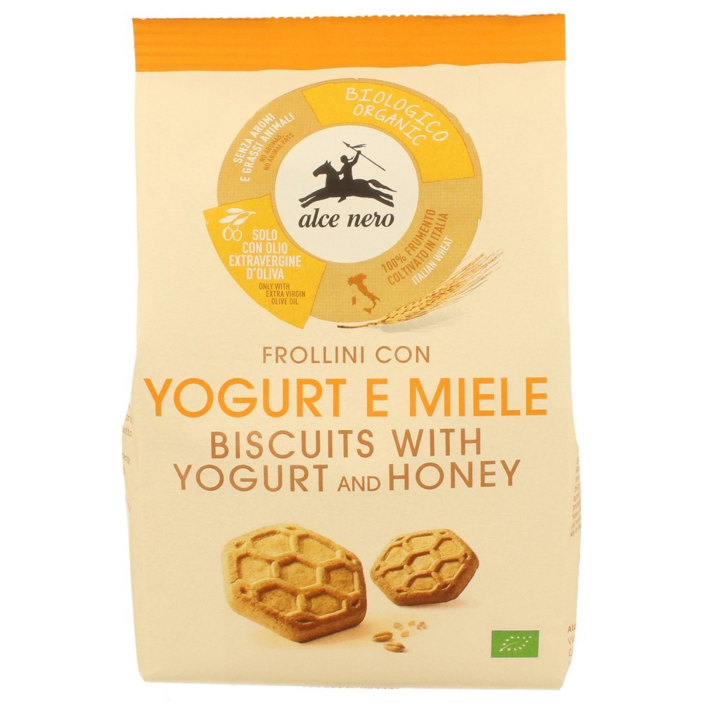 Alce Nero Frollini cu iaurt si miere bio. Acesti biscuiti crocanti sunt combinati cu iaurt si miere. Bucurati-va de acest mic rasfat ca gustare intre mese cu cafea sau ceai proaspat.