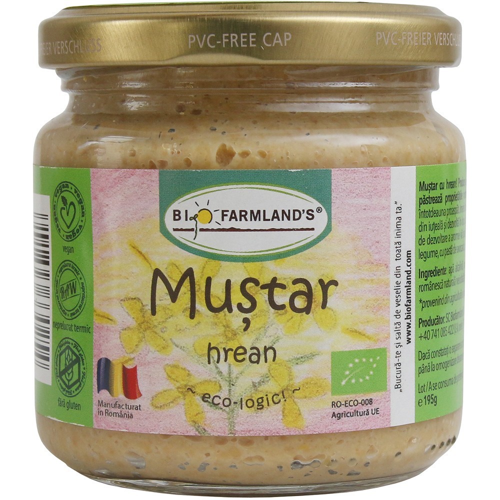Ingrediente: mustar macinat* (21,5%), hrean* (6,1%), miere*, apa alcalina, otet de mere*, sare romaneasca naturala neiodata si fara anticoagulanti