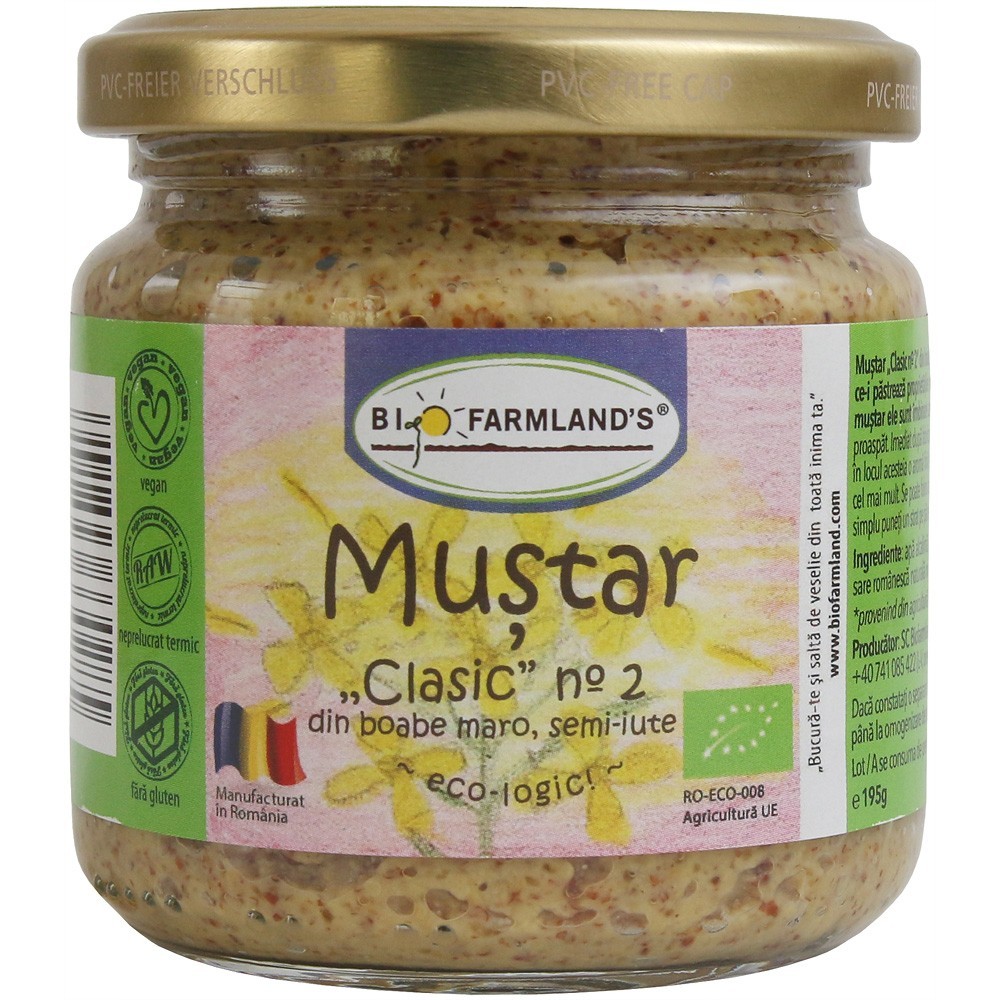 Ingrediente: mustar macinat (galben 11,9% si maro 11,9%)*, apa alcalina, otet de mere*, sare romaneasca naturala neiodata si fara anticoagulanti