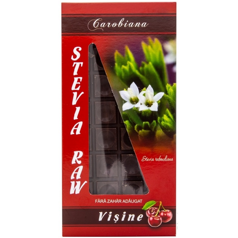 Carobiana a fost formulata, ca sa satisfaca cele mai noi tendinte in materie de nutritie. Este eliminat in totalitate adaosul de zahar precum si indulcitorii artificiali si extrasele de salvie. Nu contine arome. Dulcele produsului este adus de frunza verde de stevie ecologica, uscata natural si fin macinata. Trebuie sa amintim adaosul de fibre alimentare de cicoare - inulina - care pe langa senzatia de satietate intervine si ca un prebiotic in sistemul digestiv. Caruba sau roscova este lipsita de cafeina si teobromina fiind bogata in elemente minerale si fibre. Visinele nu sunt confiate, deci sunt fara zahar, si confera un gust placut acrisor intregului produs.