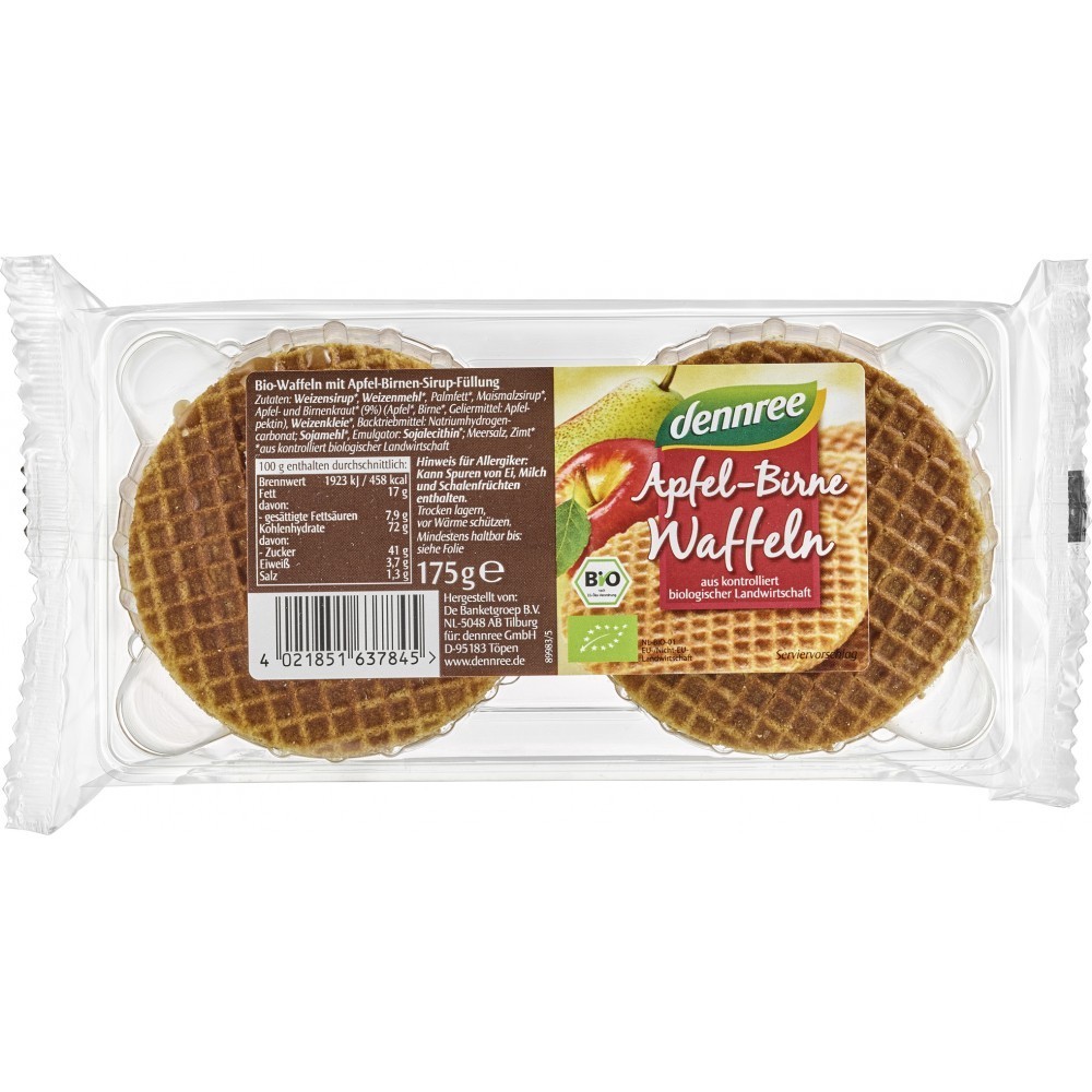 Vafele bio cu mere si pere ofera placere pura. Vafele maro auriu sunt coapte din cele mai bune ingrediente organice si rafinate cu o delicioasa umplutura organica de mere si sirop de pere. Aceasta specialitate este ideala cu ceai si cafea sau ca o gustare intre mese. Bucurati-va de gustul aromat de mere si pere.