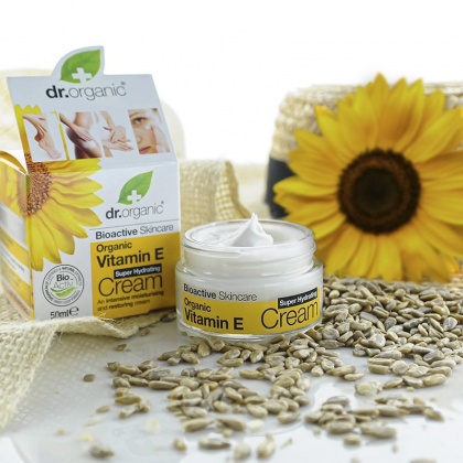Dr. Organic produse cosmetice bio cu vitamina E cel mai puternic antioxidant din natura. Vitamina E sau tocoferolul este un antioxidant natural ce ajuta la protejarea si regenerarea celulelor si de asemenea constituie un ingredient foarte valoros in produsele cosmetice avand efect anti-imbatranire. Aceasta vitamina protejează eficient celulele impotriva atacurilor radicalilor liberi. O singură moleculă de tocoferol poate proteja impotriva oxidarii. Regenereaza pielea dupa expunerea la soare, minimizand efectele nocive ale razelor UV. Previne impactul de mediu negativ, deoarece asigura stabilitatea membranelor celulare si a tesuturilor, realizand astfel incetinirea procesului de imbatranire. Lupta impotriva ridurilor impiedicand imbatranirea prematura a pielii predispuse spre asa ceva. De asemenea ajuta la prevenirea vergeturilor si a celulitei, tocoferolul fiind un maestru in lupta impotriva aparitiei acestora.