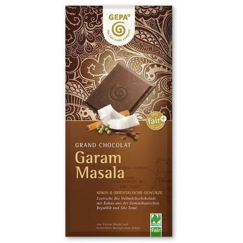 Ingrediente: Ciocolată cu lapte*, fulgi de nucă de cocos *(6%), mix de condimente Garam Masala*, lapte praf integral*(24%), unt de cacao*, masa de cacao*, extract de vanilie*, cacao*37%, zahar brut din trestie.
