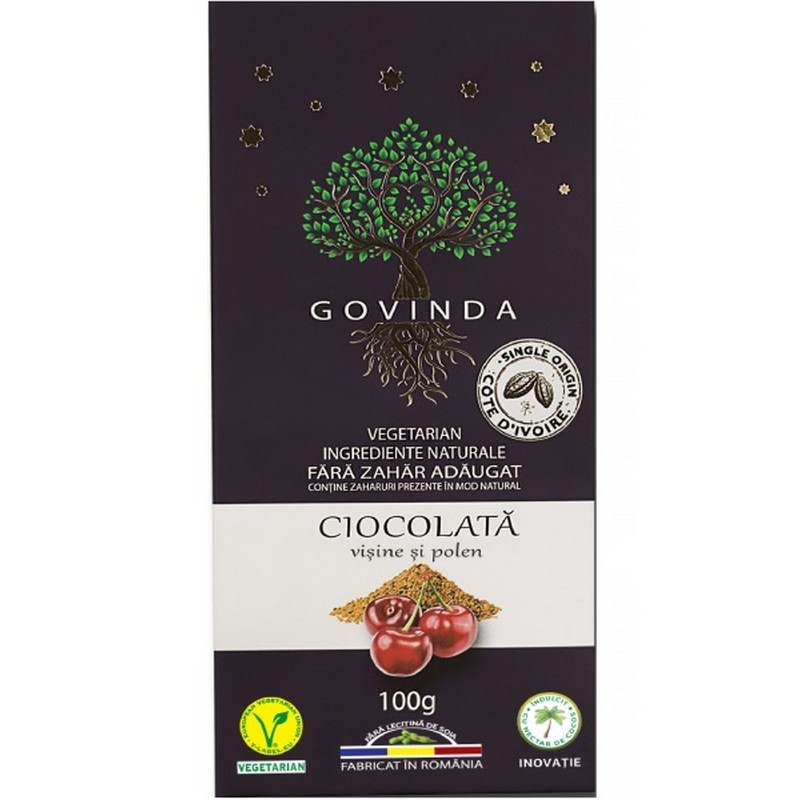 Ingrediente: masa de cacao, nectar granulat din flori de cocos, unt de cacao, visine dezhidratate (10%) polen de albine (5%).