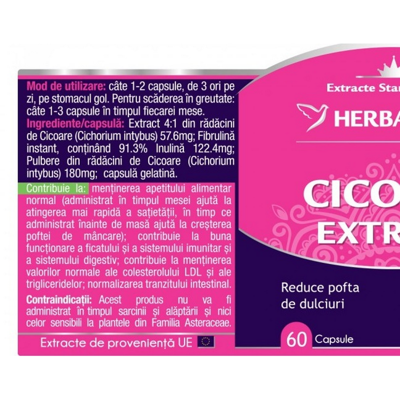 Ingrediente/Compoziție per 1 capsulă: Cicoare pulbere din rădăcini - 180 mg; Fibrulina instant, conținând 91.3% Inulina - 122.4 mg; Extract 4:1 din rădăcini de Cicoare - 57.6 mg; capsulă de gelatină.