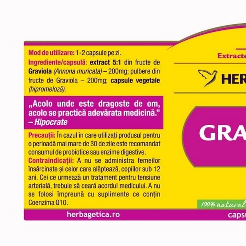 pulbere din fructe de Graviola: 200 mg