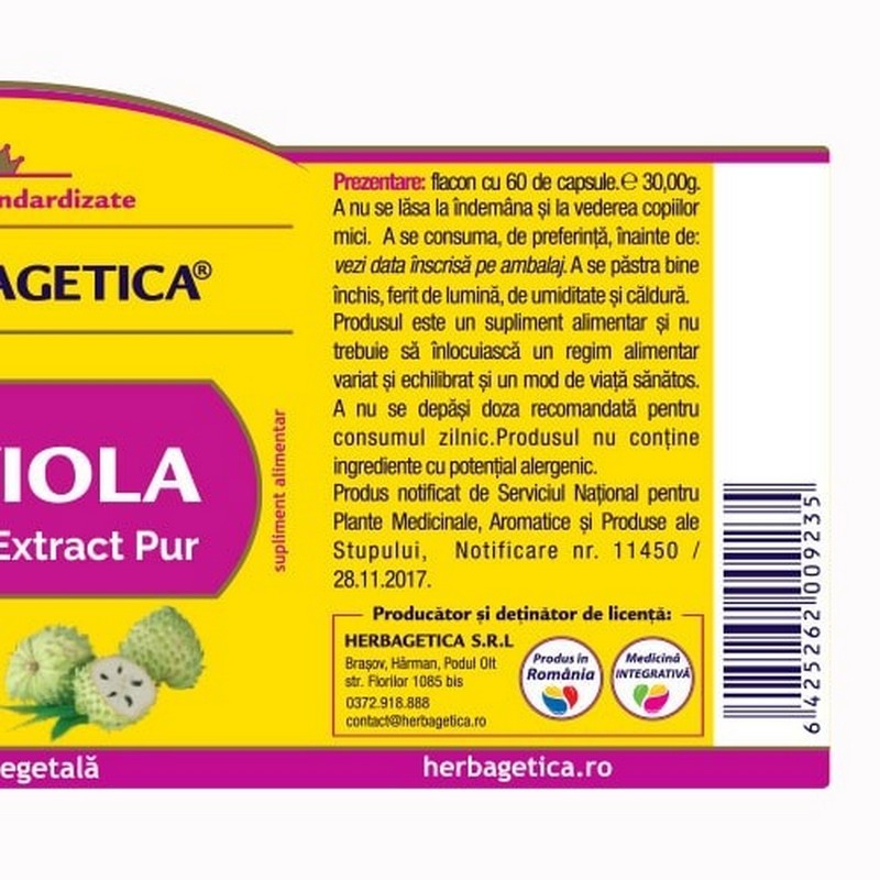 Graviola (Annoa Muricata) este un fruct verde, în formă de inimă, ce se găsește în zona amazoniană și Asia de Sud-Est. Are o istorie îndelungată de întrebuințare în medicina tradițională, fiind recunoscut pentru capcitatea sa de a stimula imunitatea și de a proteja organismul de stresul oxidativ.