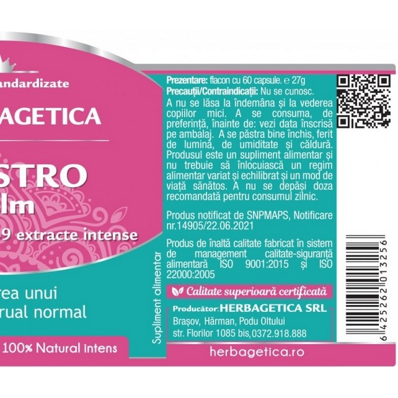 Herbagetica Menstro Calm, formula premium* 9 extracte intense, 60 capsule