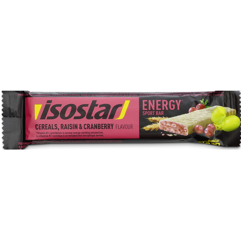 Ingrediente: sirop de glucoza, fulgi de ovaz 14.8%, fainuri (orez si grau), stafide 10%, zahar, sirop de zahar invertit, grasimi vegetale (copra, samburi de palmier, palmier, shea) in proportii variabile, stabilizator: glicerol, orez expandat 2.9%, merisoare deshidratate 1,9%, lapte degresat pudra, zer pudra, dextroza, malt de grau, aroma, sare, gluten de grau, emulsifianti: lecitine de rapita si de soia, acidifiant: acid citric, vitaminele C, PP, B6, B1, B2, E (lactoza, proteine din lapte), colorant: carmin (gelatina de peste), sulfat de zinc.