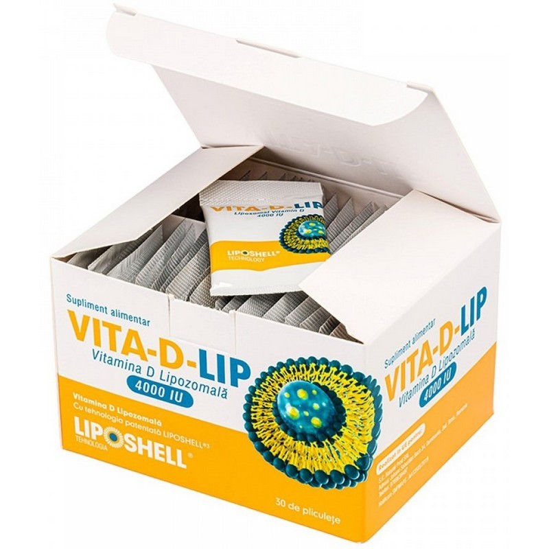 VITA-D-LIP este un supliment alimentar care se caracterizează printr-un conținut ridicat de vitamina D în lipozom.