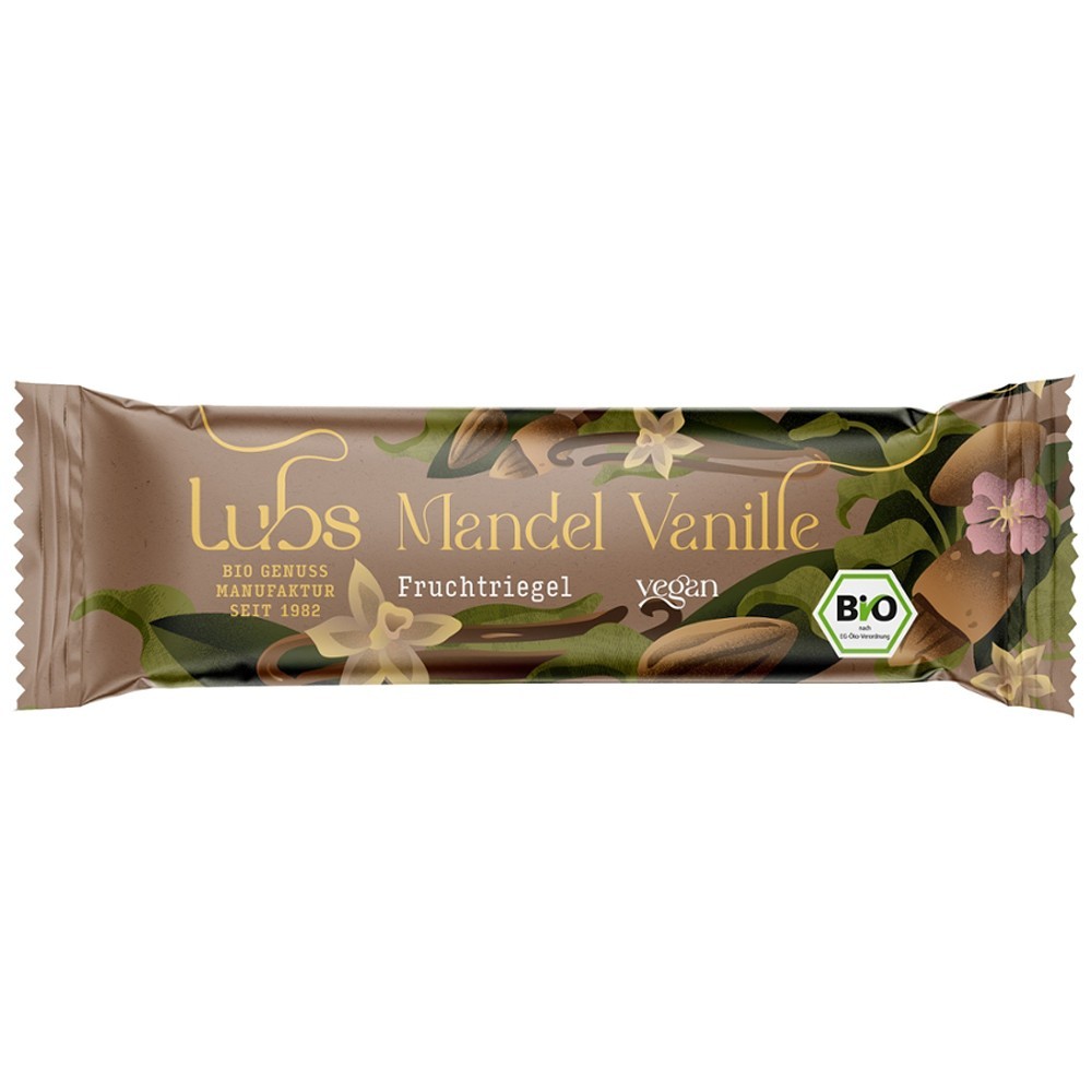 Lubs baton bio cu migdale si vanilie FARA GLUTEN este ub delicios baton de fructe fara gluten cu curmale smochine migdale alune vanilie si altele. Ideal pentru deplasare si pentru o gustare intr-o scurta pauza