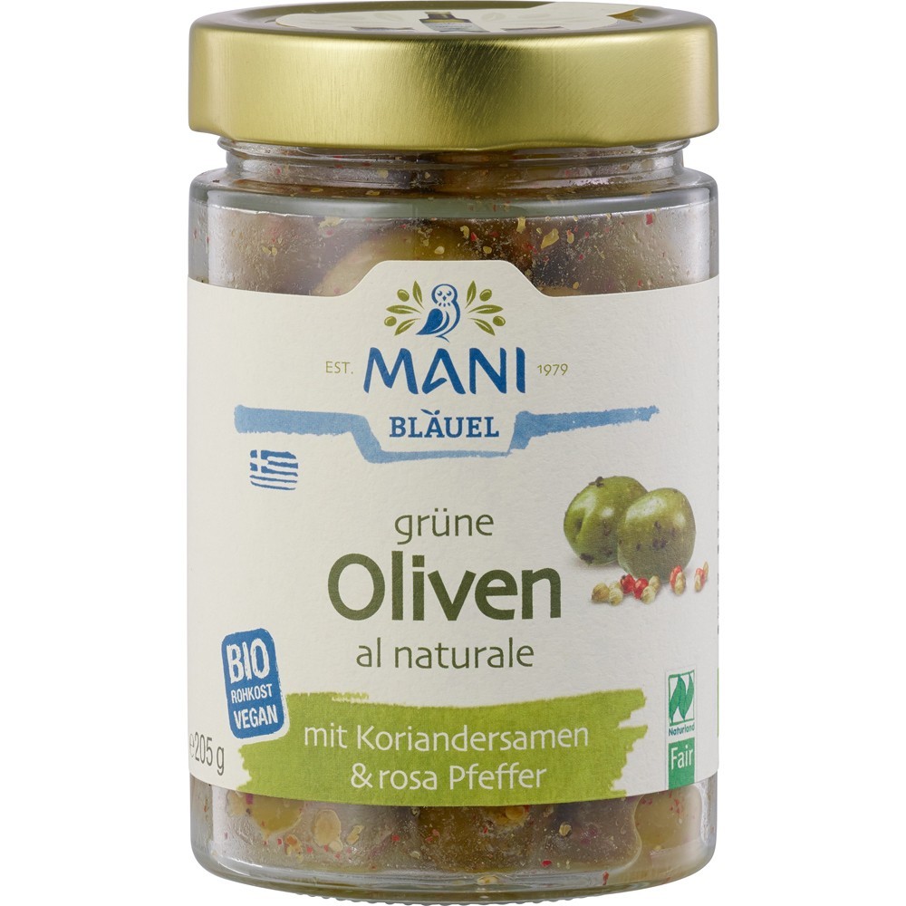 Ca cunoscator Mani, ar trebui sa incerci cu siguranta aceasta varianta Maslinele Mani Blauel sunt culese bland si debitate natural, fara adaos de conservanti.