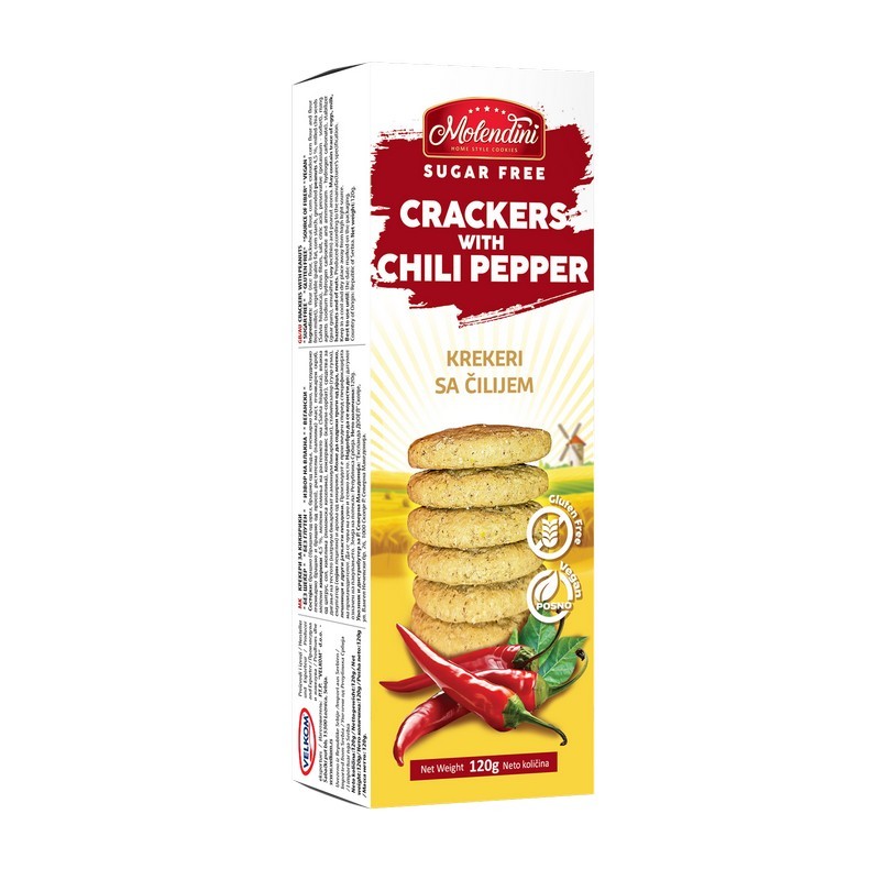 Crackers-ul cu ardei iute (chili) din gama MOLENDINI este gustarea perfectă pentru iubitorii de arome picante, dar și pentru cei care urmează un stil de viață sănătos.