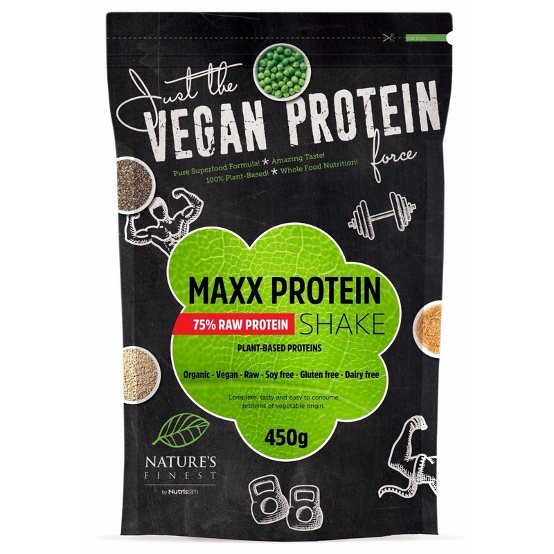 Contine proteine din plante cultivate ecologic si super-alimente, fără adaos de conservati, fără adaos de sare, fără adaos de zaharuri, fără gluten, fără soia, fără lactate.