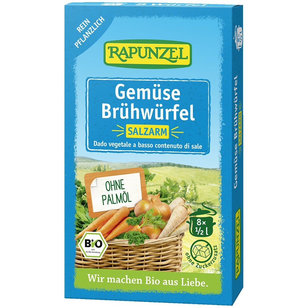 Cubul de supa de legume bio cu continut scazut de sare este ideal pentru oricine doreste sa reduca sarea din alimentatie. Cuburile au o aroma echilibrata datorita multor legume si ierburi diverse. Fara zahar.