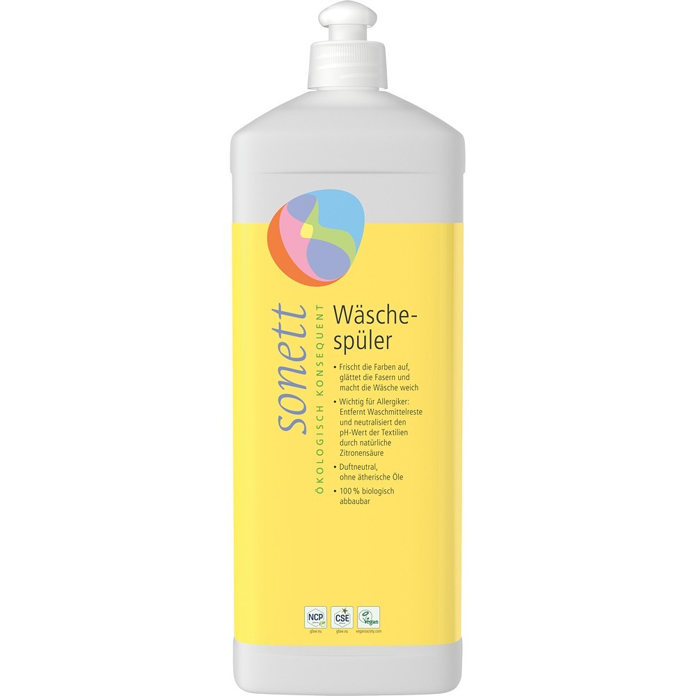 Balsamul Sonett de rufe reda luciul culorii hainelor, netezeste fibrele si face hainele sa fie moi. Nu contine parfum si este farar uleiuri eterice. Obtinut dupa o reteta 100% biodegradabila. Tipul de acid citric este unul alimentar, fapt ce permite neutralizarea textilelor pastrate, fiind ideal astfel pentru oamenii cu o piele sensibila. Balsamul de rufe reimprospateaza culorile, netezeste fibrele si face rufele moi.