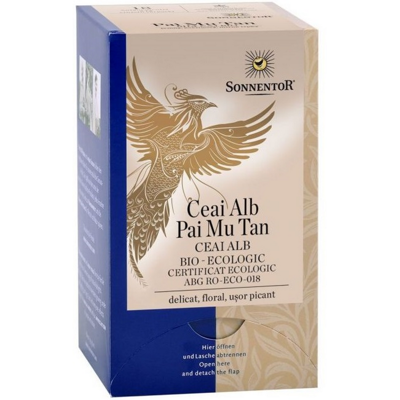 Delicat, floral, ușor picant Pai Mu Tan în limba Chineză înseamnă ”Bujor Alb”, deoarece frunzulițele de ceai, la infuzat, se aseamănă cu petalele de bujori. Muguri și boboci delicați împreună cu primele două frunzulițe sunt atent uscate pentru obținerea ceaiului Pai Mu Tan. Un ceai indrăgit, o adevărata plăcere, cu un gust floral, delicat și ușor picant. Excepțional pe lângă o masă ușoară: preparate din legume sau salate.