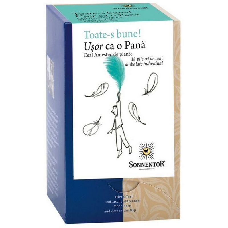 O combinație unică de urzică, flori de soc, lemongrass, ovăz verde, mate, crețișoară, petale de trandafir, petale de floarea-soarelui și ghimbir oferă o rază de lumină în zilelele de post, simțindu-vă ușori ca o pană. Gust răcoritor dar corpolent, cu o notă ușor amăruie și piperată, acest amestec este ceaiul perfect în timpul curei de detoxifiere și o bucurie în perioada de după mesele copioase şi excesele cu prilejul sărbătorilor de iarnă.