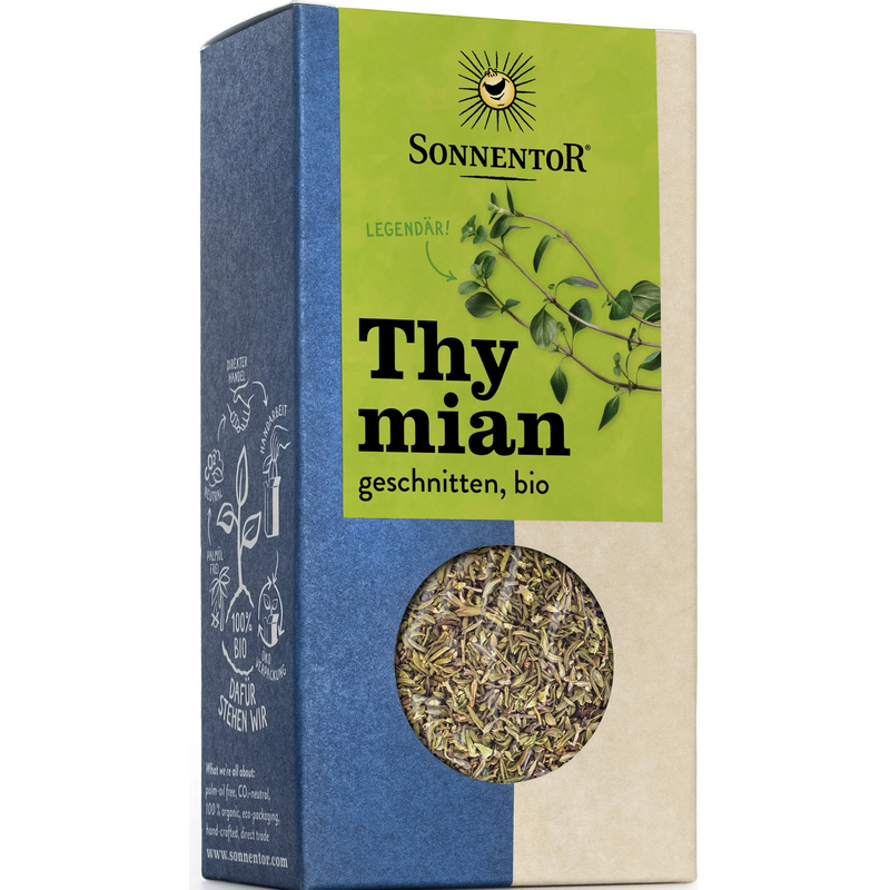 Cimbrul BIO este un condiment uscat din planta cunoscută în mod obișnuit sub numele de cimbru de grădină (Thymus vulgaris). Este caracteristic bucătăriei mediteraneene, unde adaugă o notă de gust diferitelor specialități gourmet cu gustul său ușor dulce. Este, de asemenea, popular printre persoanele care doresc să promoveze sănătatea și vitalitatea generală.