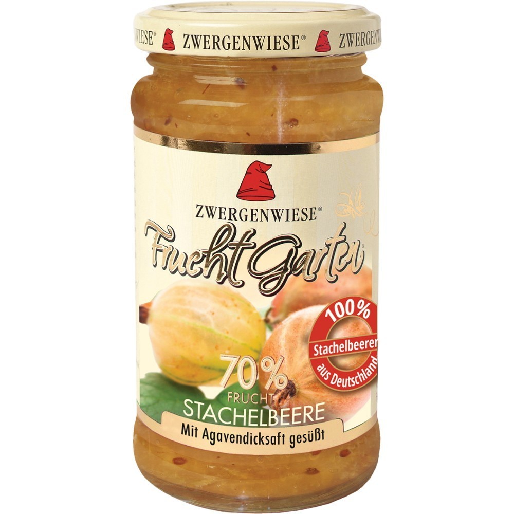 Cu un continut de fructe de 70% este facut din fructe selectate coapte la soare intr-un proces delicat in cantitati mici. Dulceata naturala a fructelor ecologice este completata cu sirop de agave valoros. Cu 18 soiuri gradina noastra de fructe indulceste in mod natural micul dejun deserturi si multe altele torturi lapte inghetata s.a.